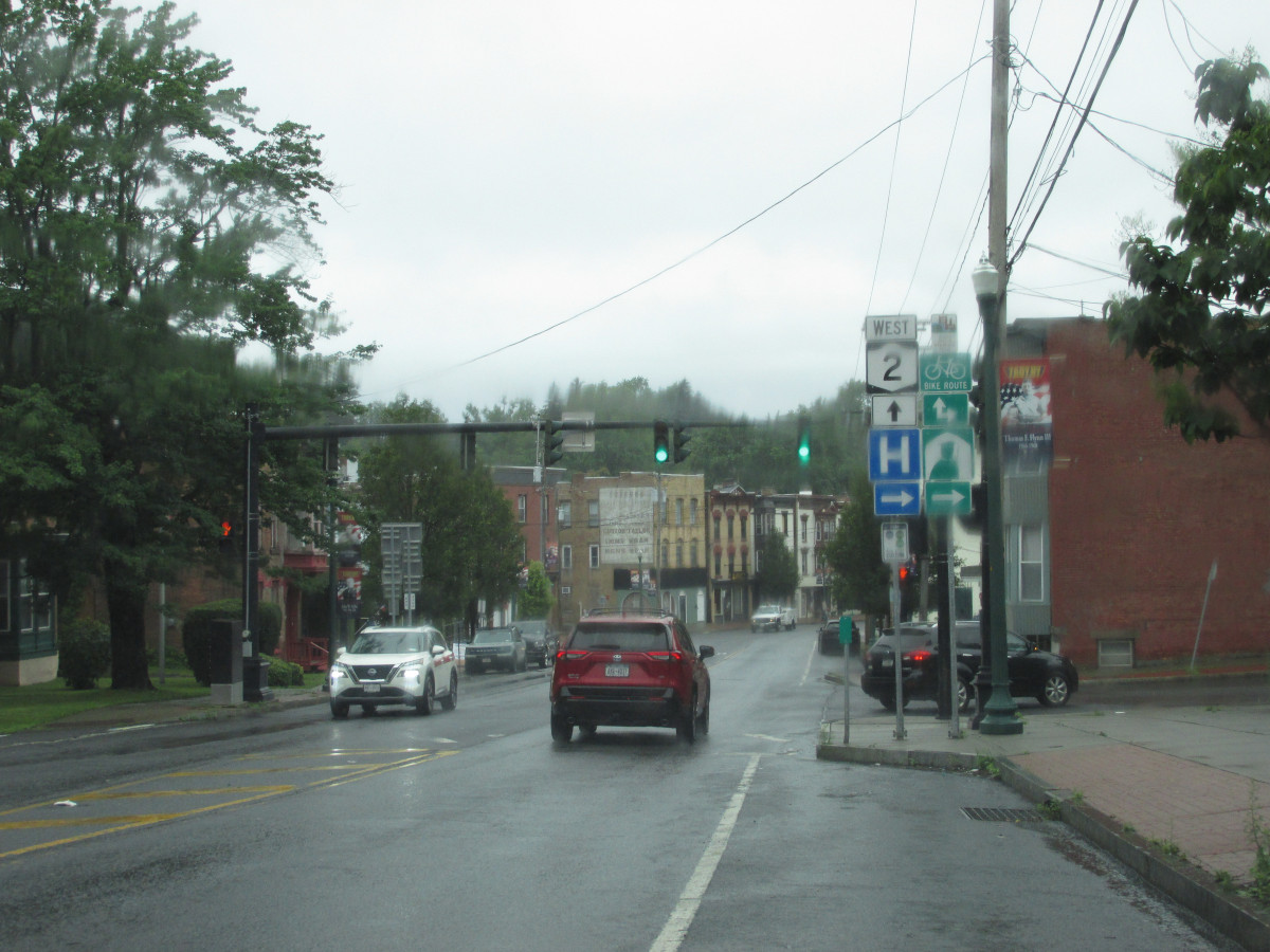 NY 2 originally began at US 4 in Troy but was extended west to Latham when NY 7 was relocated to the north in 1981. |