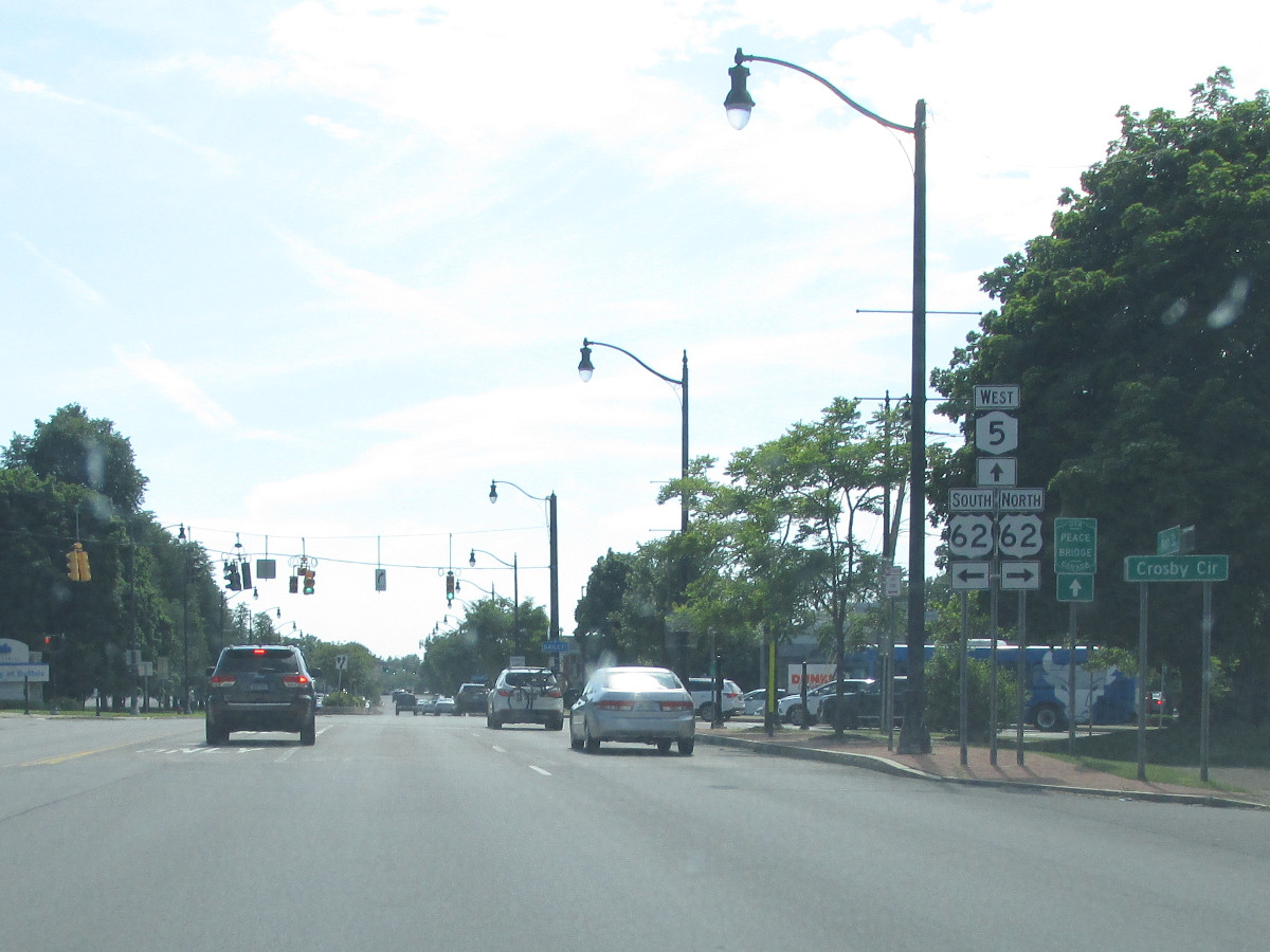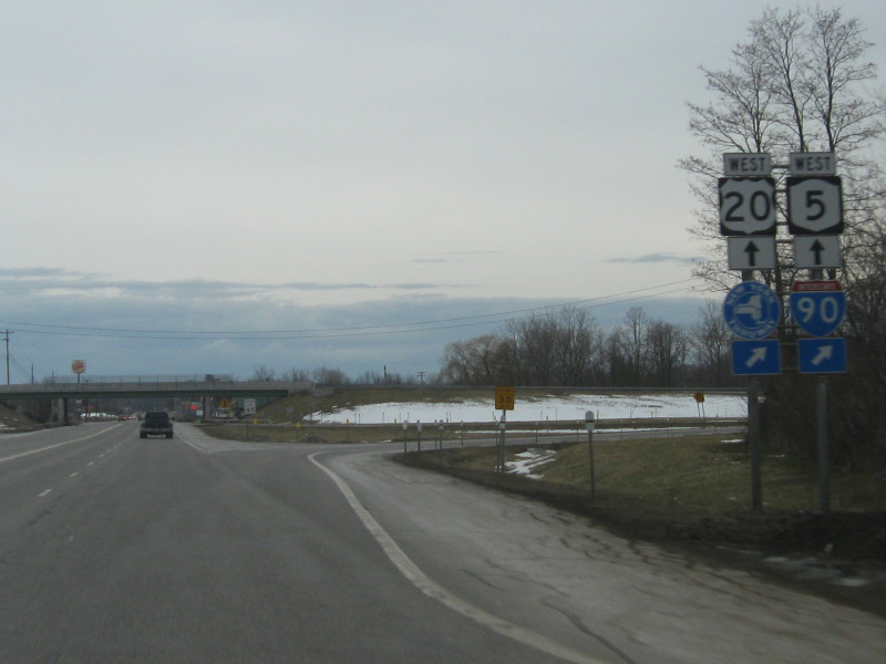 * The western terminus was originally in Buffalo, but was extended west along the Lake Erie shore in the early 1930's. * In the 1950's, NY 5 was slated to be relocated to a newly built expressway from downtown Syracuse to Auburn. Only the section from Camillus to Fairmount was built. * US 20/NY 5 in Canandaigua was relocated from West Ave. and S. Main St. to a newly built bypass in 1981. |