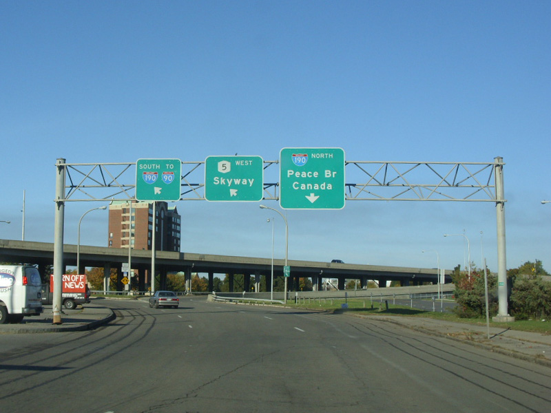 Lake Rd., Lake Shore Dr., Central Ave., Erie Rd., Hamburg Tpke., Buffalo Skyway, Church St., Division St., Elmwood Ave., Chippewa St., Pearl St., Ellicott St., Goodell St., Main St., State Rd., Avon-Caledonia Rd., Western Blvd., Eastern Blvd., Geneva Tpke., Hamilton St., Grant Ave., Genesee St., Erie Blvd., Genesee Tpke., Seneca Ave., State St., Seneca Tpke., Herkimer Rd., Albany St., Grand St., Grove St., Amsterdam Rd., Mohawk Ave., Central Ave., Washington Ave., Eagle St. |