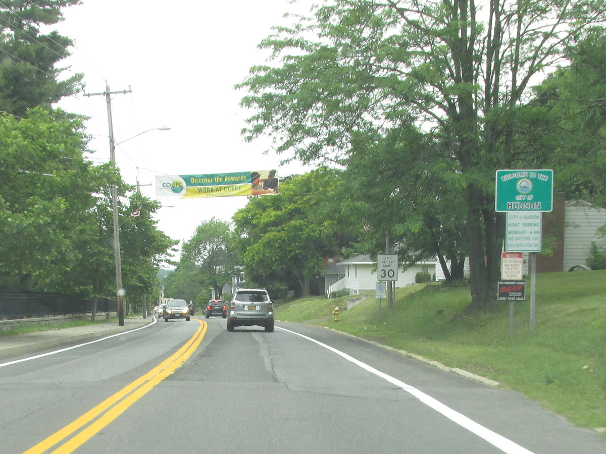 George Washington Bridge, Trans-Manhattan Expressway, W. 179th St., W. 181st St., Broadway, Albany Post Rd., Highland Ave., Croton Expressway, Briarcliff-Peekskill Parkway, South Rd., North Rd., Mill St., Montgomery St., Spring Brook Ave., Claverack Rd., Blue Hill Rd., Worth Ave., Warren St., Park Pl., Green St., Fairview Ave., Stottville Village Rd., Broad St., Chatham St., Kinderhook St., Water St., Clinton Ave., Henry Johnson Blvd., Albany Shaker Rd., Loudon Rd., Halfmoon Pkwy., Van Dam St., Marion Ave., Maple Ave., Saratoga Rd., Glen St., Canada St., Main St., Maple St., Lakeshore Dr., U.S. Ave., Peru St., Charlotte St., Bridge St., Margaret St. |
