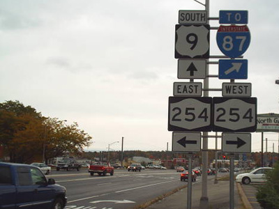 US 9. * From its inception until 1934, US 9 entered New York via ferry crossings. Until 1931, US 9 came into Manhattan from Edgwater, NJ. From 1931 until 1934, US 9 entered Staten Island from Perth Amboy, then followed Hylan Blvd. before meeting the Staten Island Ferry and taking that across the Hudson into Manhattan. In 1934, US 9's entry point was moved to its present location at the George Washington Bridge. * US 9 moved to the Croton Expressway in 1967 and its original routing became NY 9A. The Croton Expressway was to have been a part of the much larger Hudson River Expressway (I-487 and NY 399) before the project was killed off in 1971. * At the north end, US 9 may have extended to the Canadian border and continued north as PQ 9. However, it appears US 9 was truncated to its current northern terminus as the result of the construction of I-87 and Autoroute 15. |