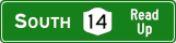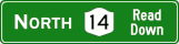Northbound NY 14 reassurance marker as the highway leaves Montour Falls.