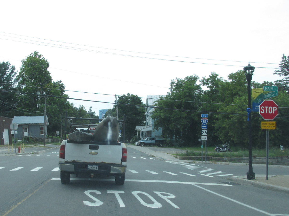 Truncating NY 26's south end to NY 17C in Endicott. South of Endicott, we recommend renumbering the current alignment as NY 267 to match PA 267 at the state line. The original NY 267 was located in Erie and Genesee Counties and was decommissioned in 1980. |