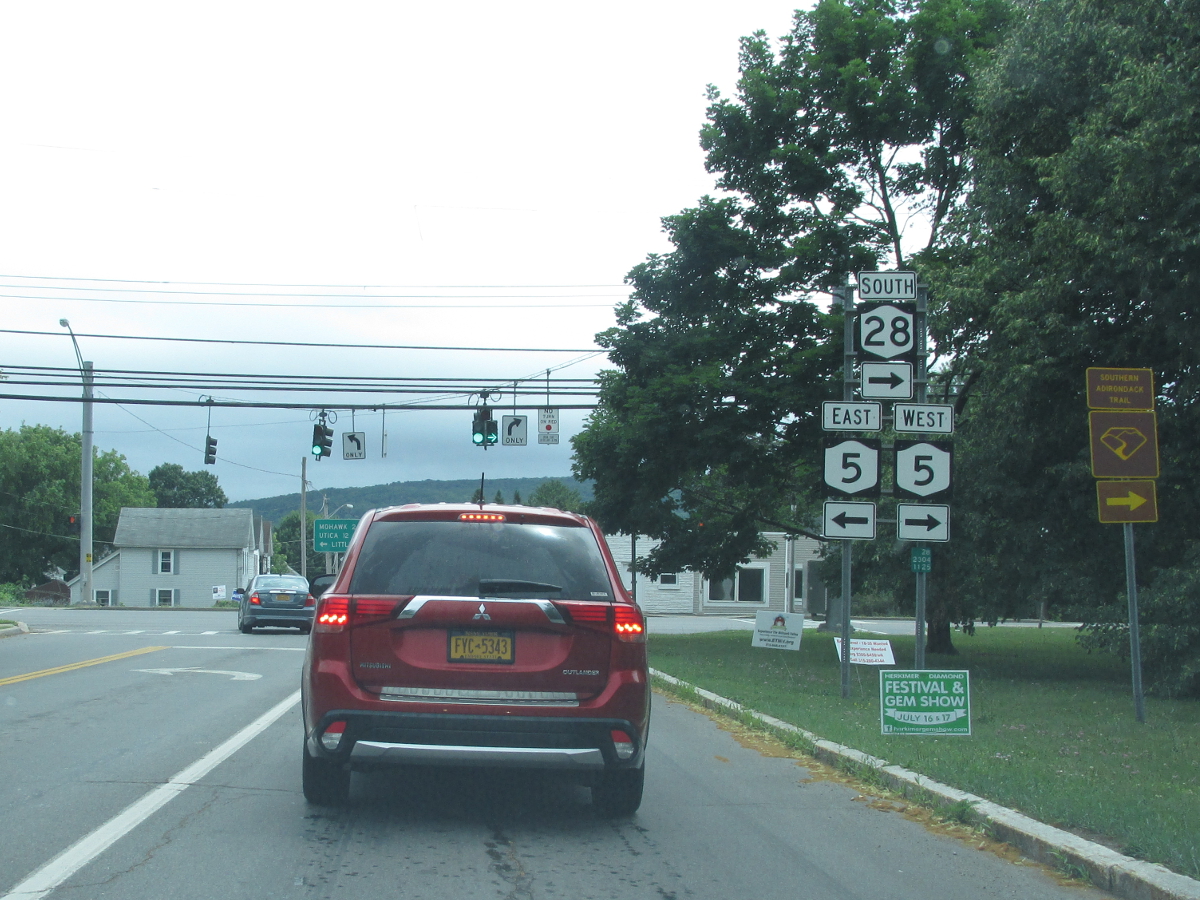 Southbound NY 28 reassurance marker in Richfield Springs. |