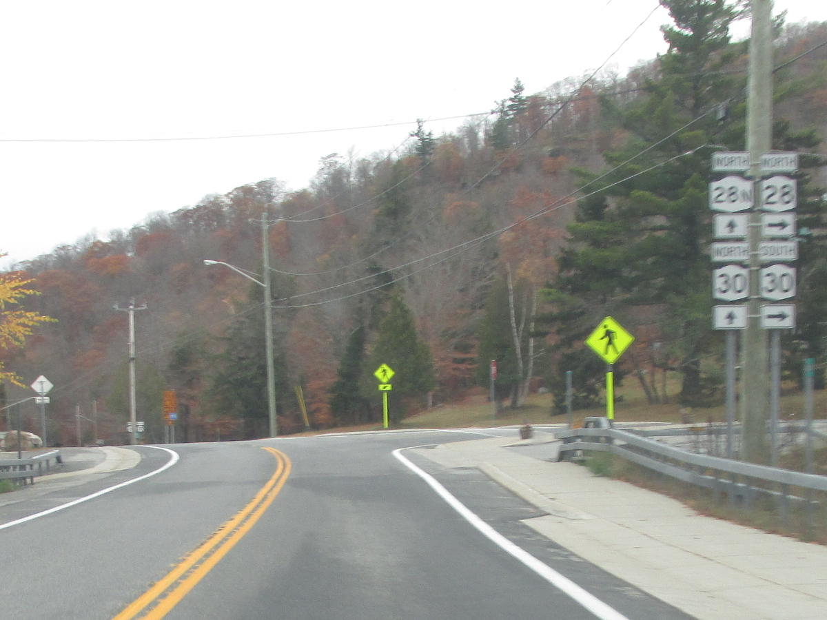 In the mid 1970's, NY 28, which was routed concurrently with NY 7 through Oneonta, was moved to I-88's alignment, where the two routes run concurrently today. |