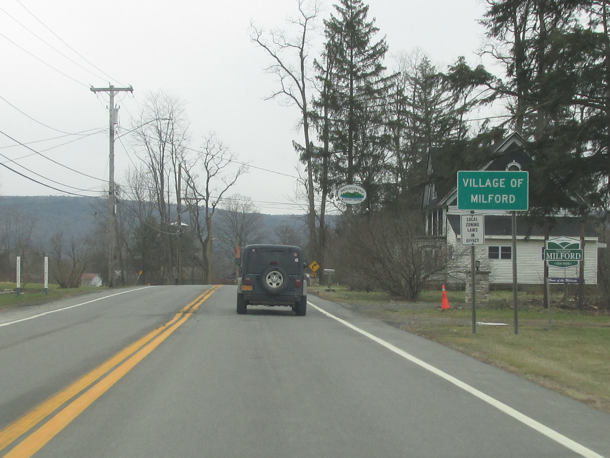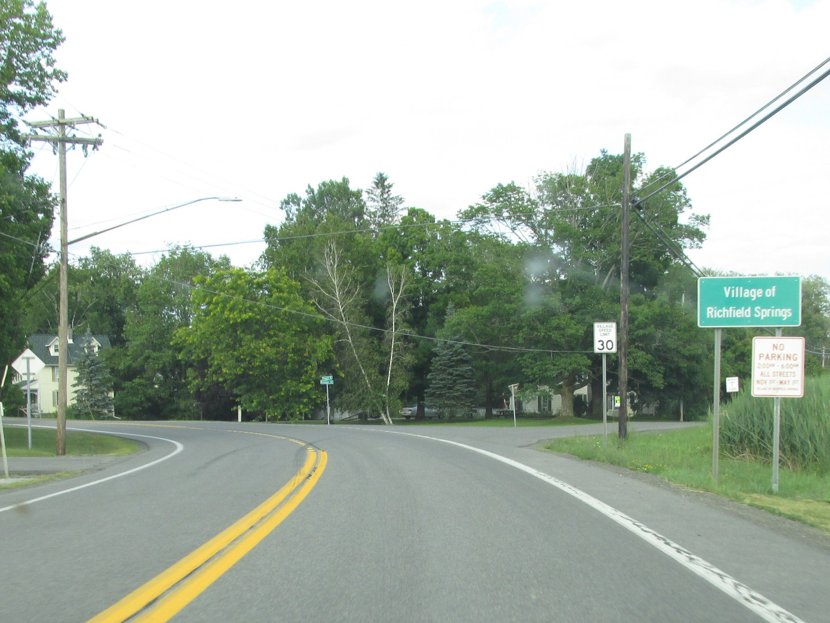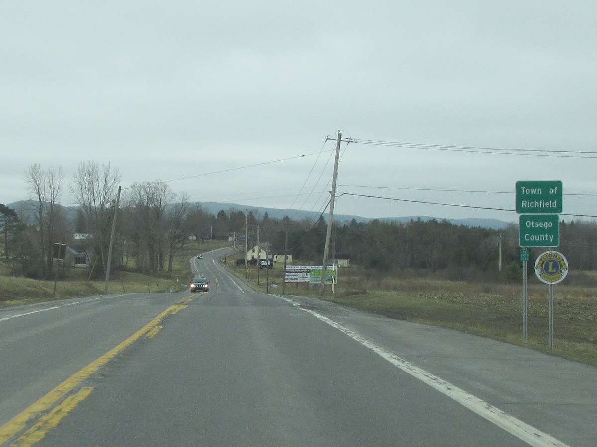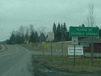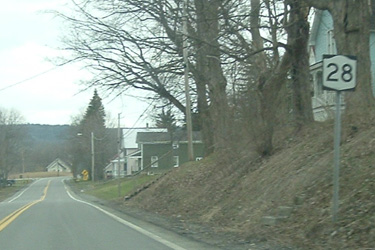 Southbound NY 28 reassurance marker in Richfield Springs. |