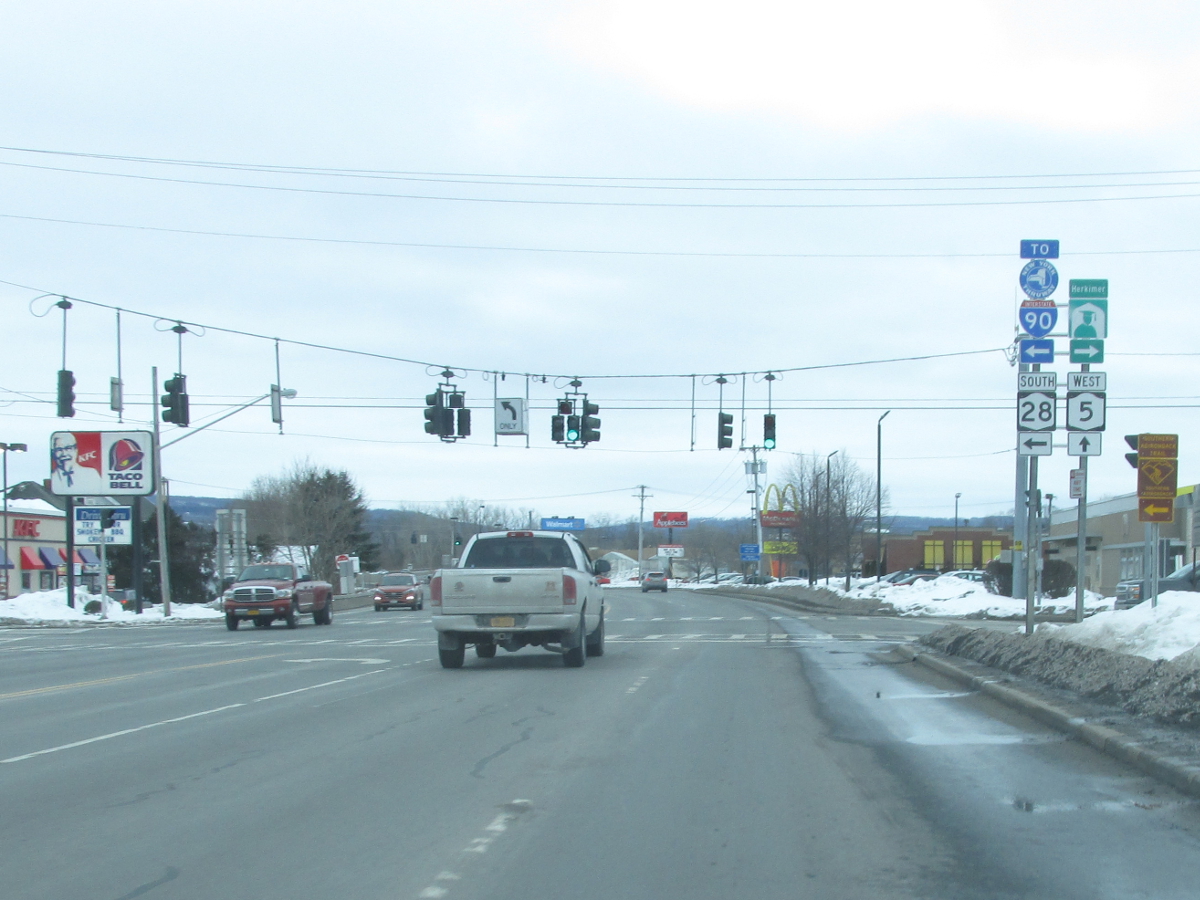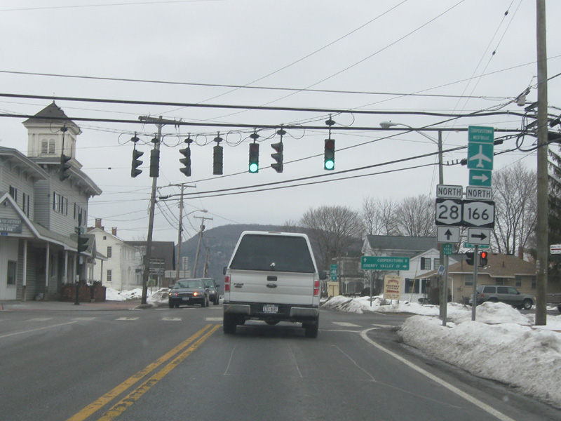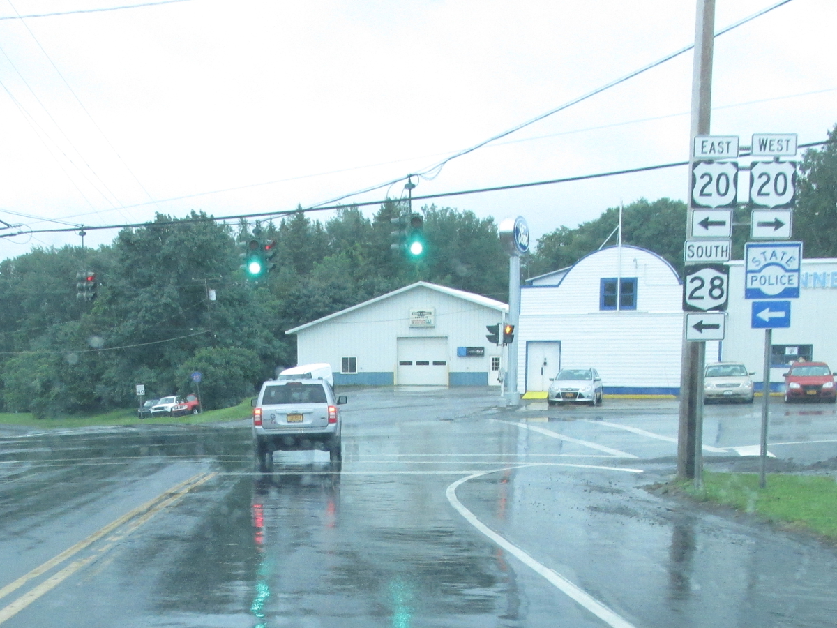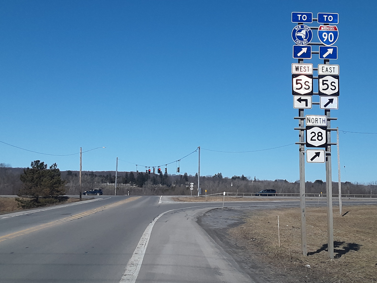 Southbound NY 28 reassurance marker in Richfield Springs. |