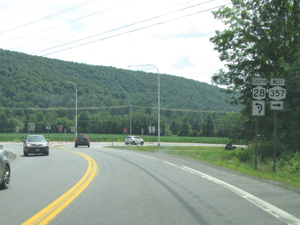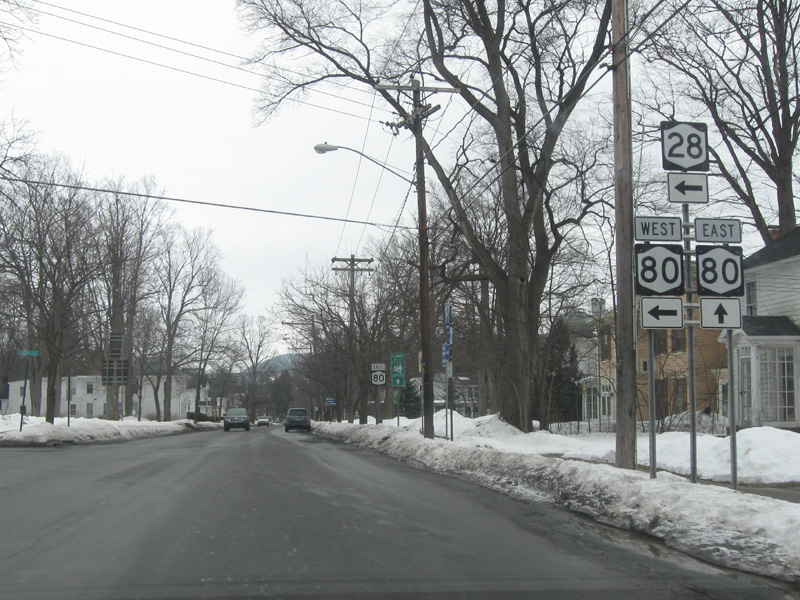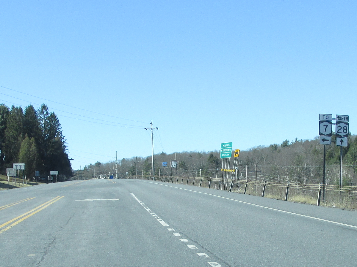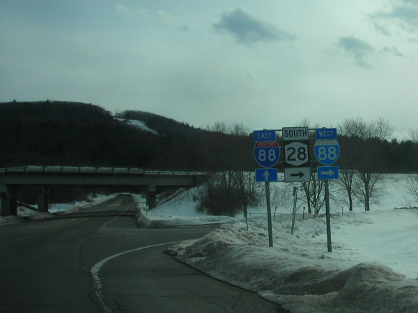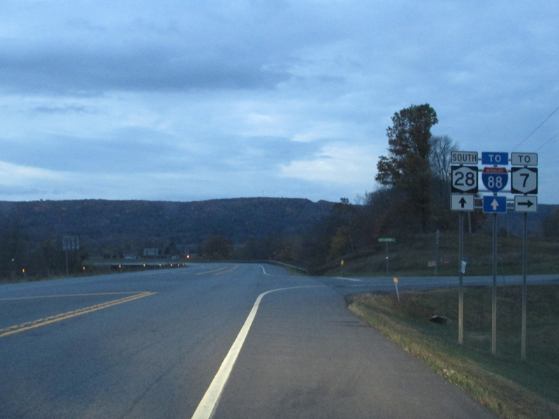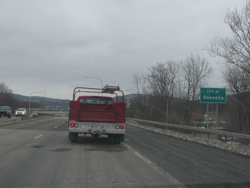In the mid 1970's, NY 28, which was routed concurrently with NY 7 through Oneonta, was moved to I-88's alignment, where the two routes run concurrently today. |