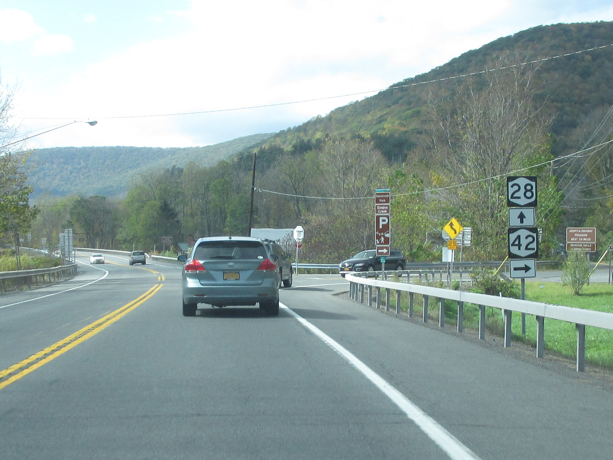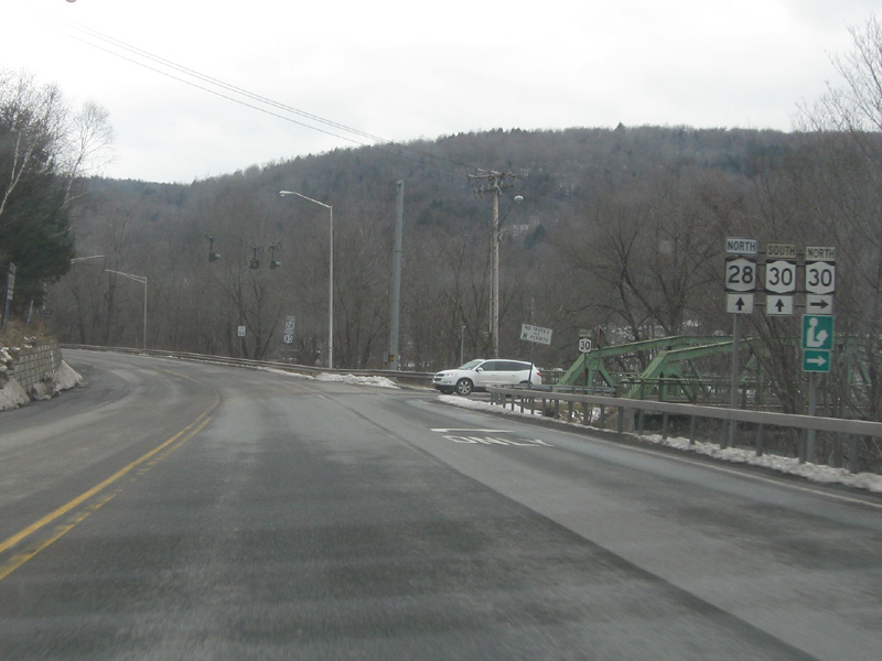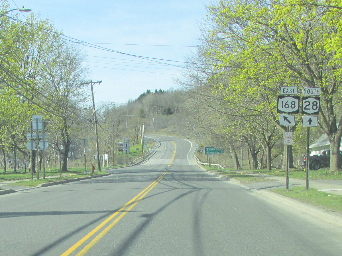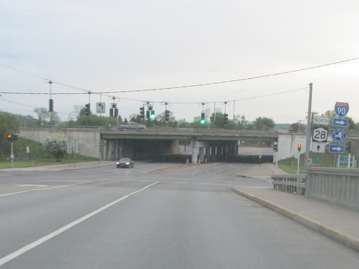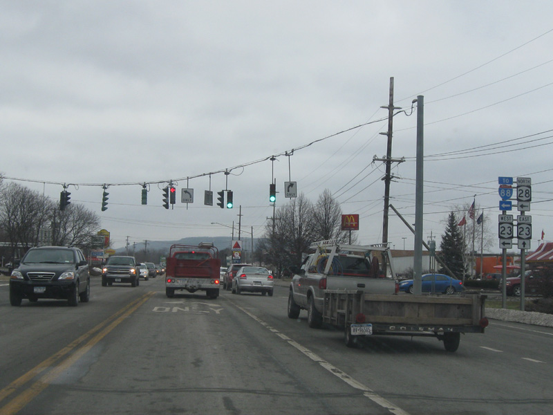 In the mid 1970's, NY 28, which was routed concurrently with NY 7 through Oneonta, was moved to I-88's alignment, where the two routes run concurrently today. |