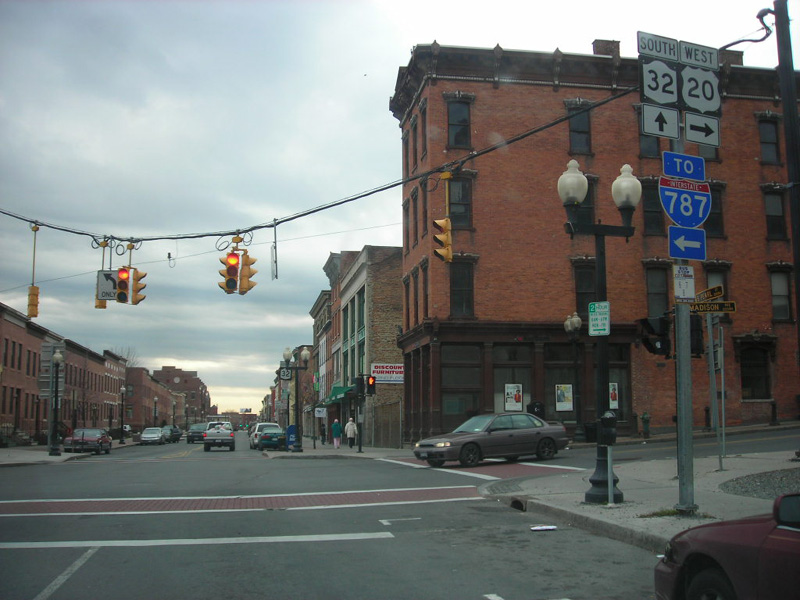 Windsor Highway, Lake St., Broadway, Robinson Ave., Plank Rd., Plattekill Tpke., Main St., Manheim Blvd., Chestnut St., Wall St., Fair St., Henry St., Albany Ave., Flatbush Ave., Burt St., Barclay St., Bridge St., Partition St., Indian Fields Rd., Feura Bush Rd., Elm Ave., Corning Hill Rd., Pearl St., Green St., Rensselaer St., Wolfert Ave., 13th St., 2nd Ave., Cohoes Rd., Saratoga St., 9th St., Broad St., 3rd St., River Rd., Gates Ave., Horicon Ave., Leonard St., Gansevoort Rd., Oakland Ave., Warren St., Highland Ave., Dix Ave., Burgoyne Ave. |