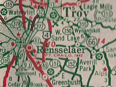 NY 40 originally extended south to US 9/US 20 in East Greenbush via NY 142 and US 4 (1930-32) and later realigned via Winter St. (Former NY 405), NY 66, present day NY 2, and 15th St and truncated to North Greenbush at US 4 (1932-73). |
