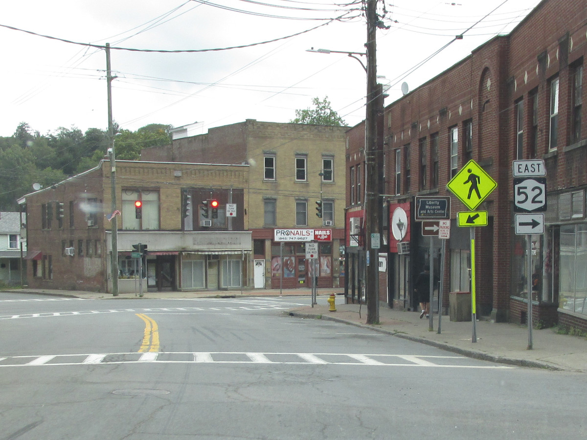 Before the Newburgh-Beacon Bridge opened to traffic in 1963, a ferry serviced NY 52 across the Hudson River. NY 52 followed Plank Rd. and South St. to the western terminal in Newburgh. From the eastern terminal at Riverfront Park in Beacon, NY 52 picked up Main St. (Current Business NY 52) and followed that east before rejoining the current alignment near Fishkill. NY 52 moved to its current alignment upon completion of the Newburgh-Beacon Bridge. |