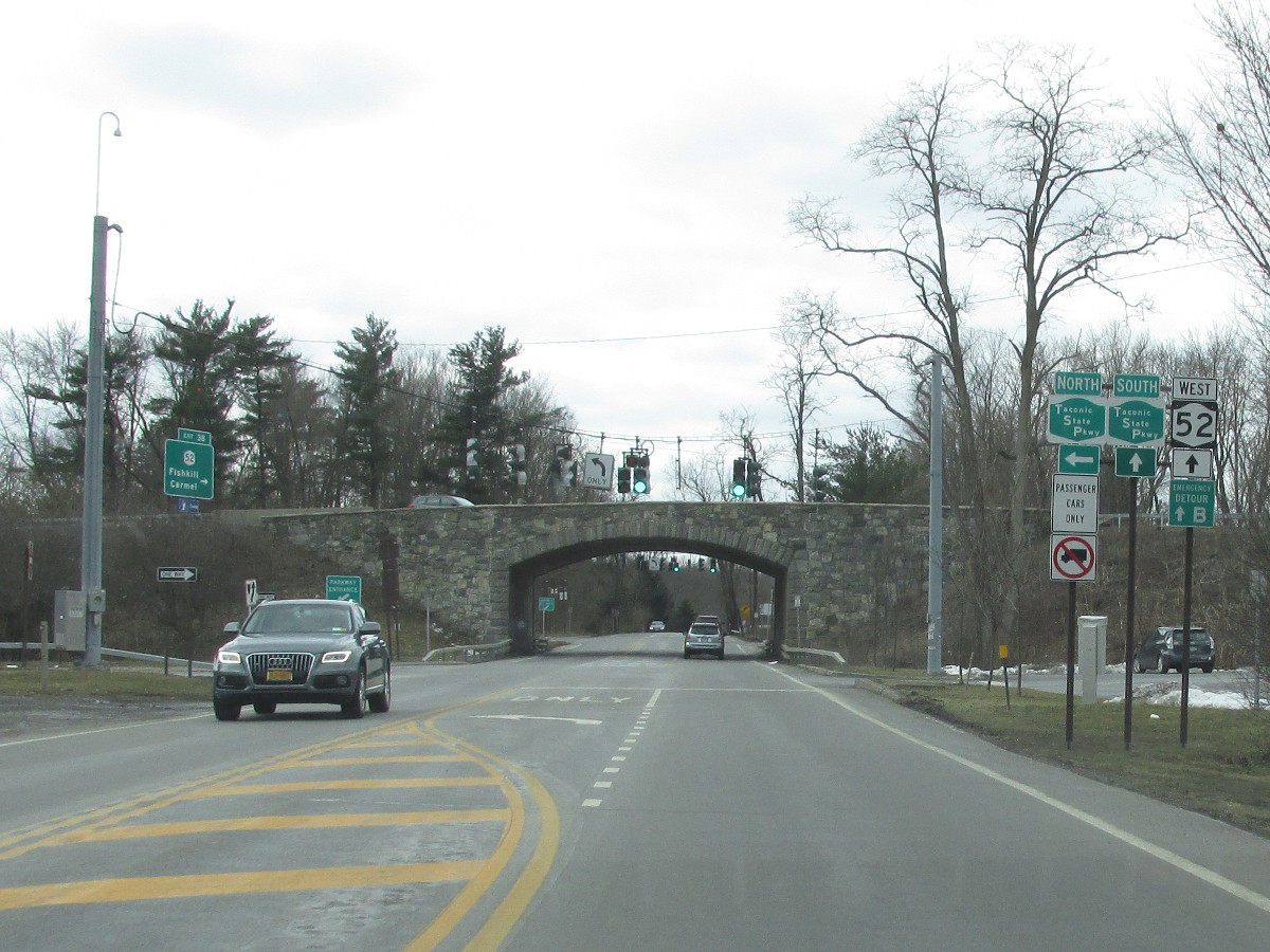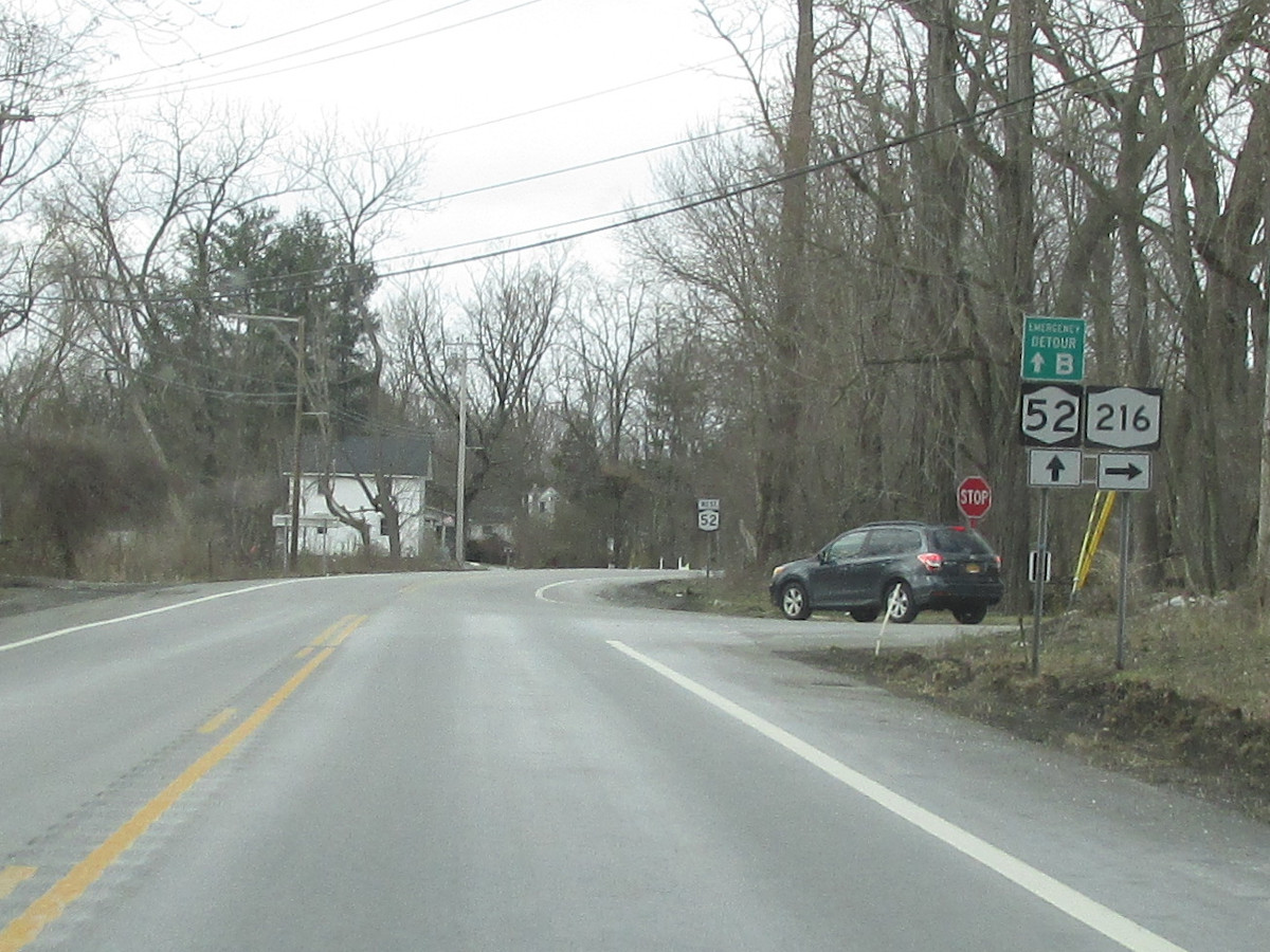 Near its eastern terminus, NY 52 originally followed present day NY 216 and NY 292 between Stormville and Towners. The alignment moved to its current location in 1937.