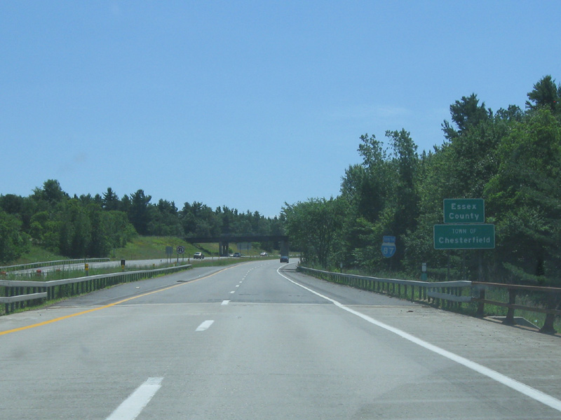The majority of I-87 was constructed throughout the 1960's. The original alignment followed the NY 22 corridor along sections of present day I-684 which had been built. Then turning west and duplexing with I-84 from Brewster to Newburgh before picking up its present alignment along the New York State Thruway to Albany, and Adirondack Northway north of there. In 1970, I-87 was moved to its current alignment.