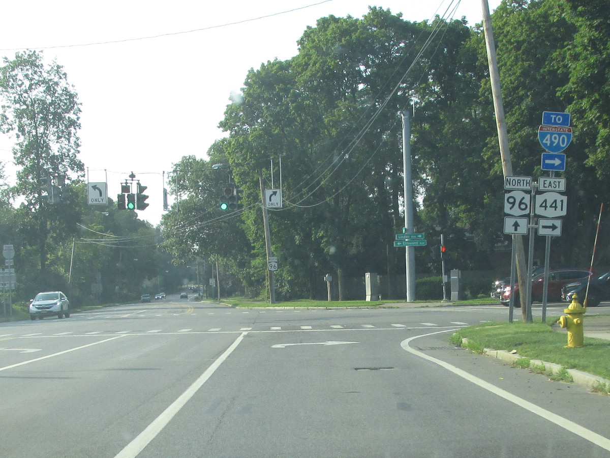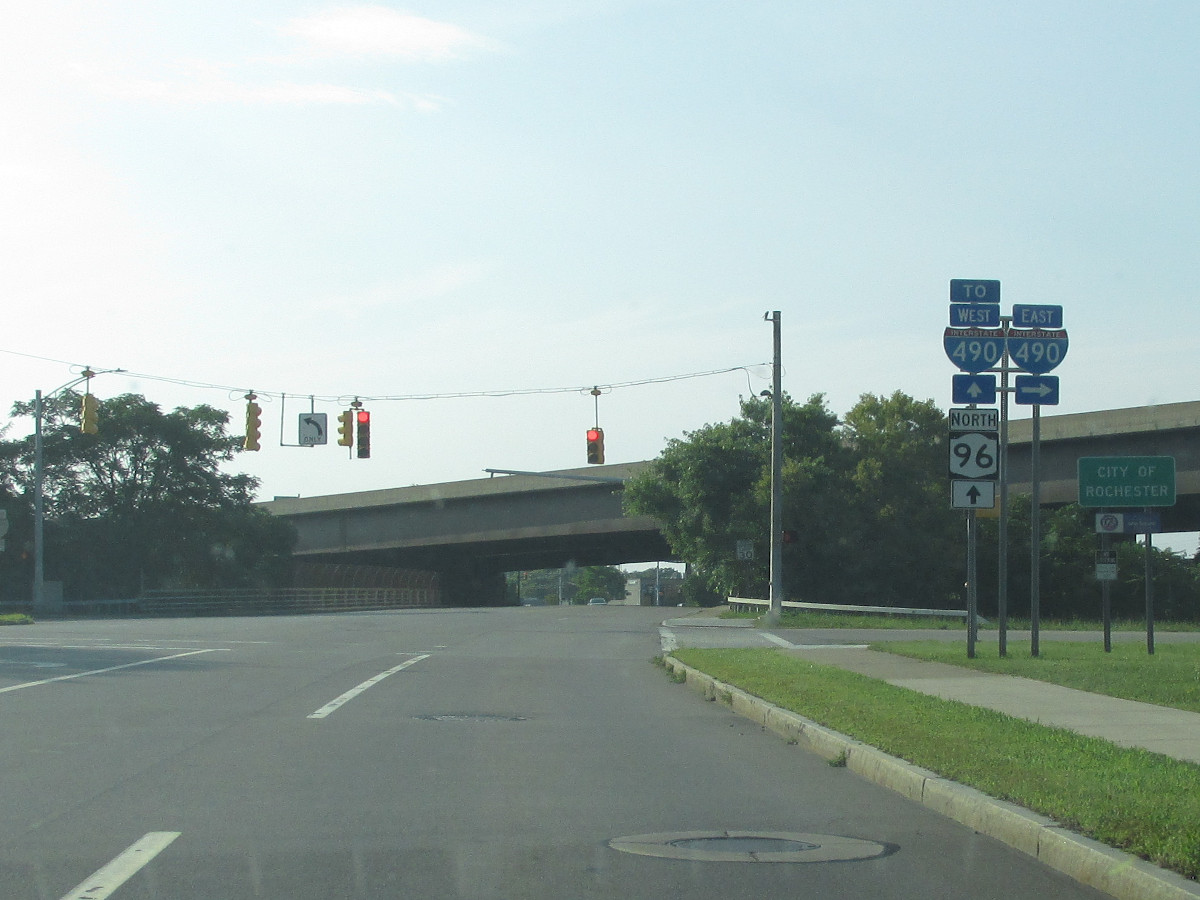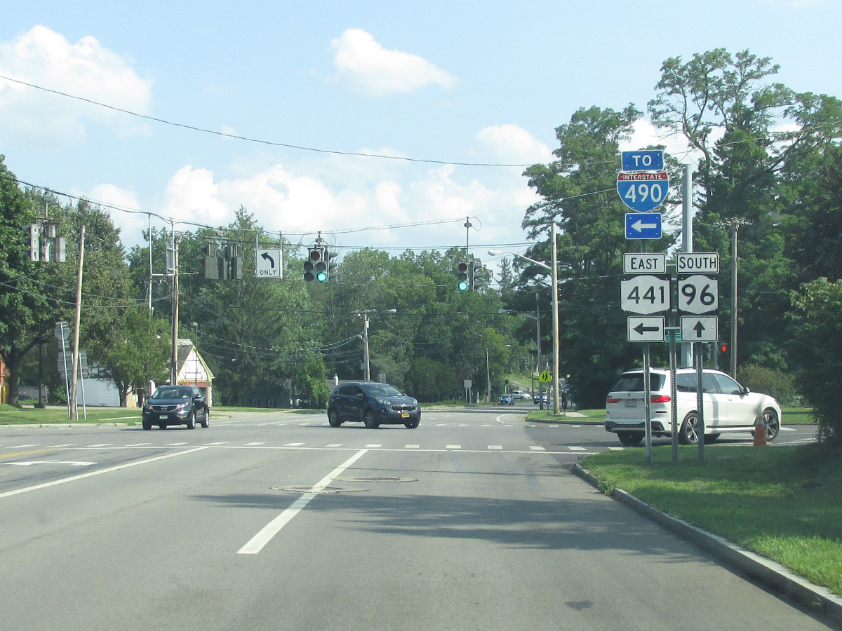 NY 96 was assigned in 1942 following an alignment swap with NY 2. In the 1950s, NY 96 between Ithaca and Candor was realigned to its present course via Spencer. The former alignment then took on the NY 96B designation. Closer to Rochester, NY 96 followed what is now I-490 between the current I-590/NY 590 interchange and Bushnell's Basin. When the I-490 designation was assigned in 1961, NY 96 returned to its original/current alignment. |