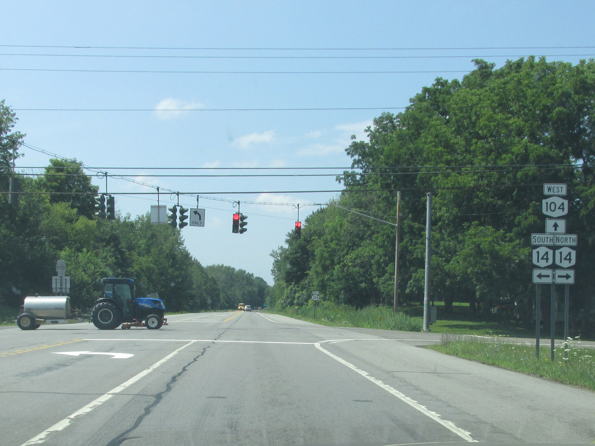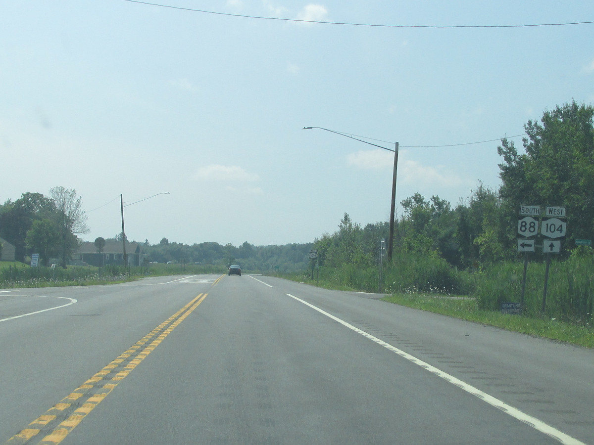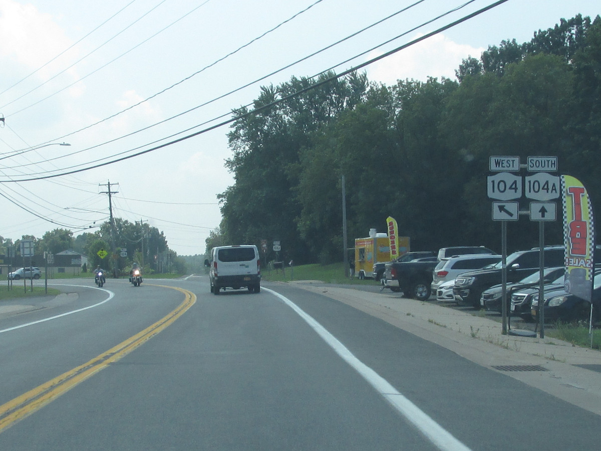 NY 104 replaced the US 104 designation in 1972. NY 104 was later extended east along the original alignment of NY 126 to Williamstown. |