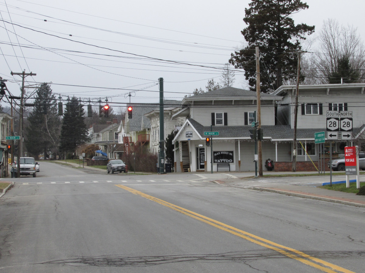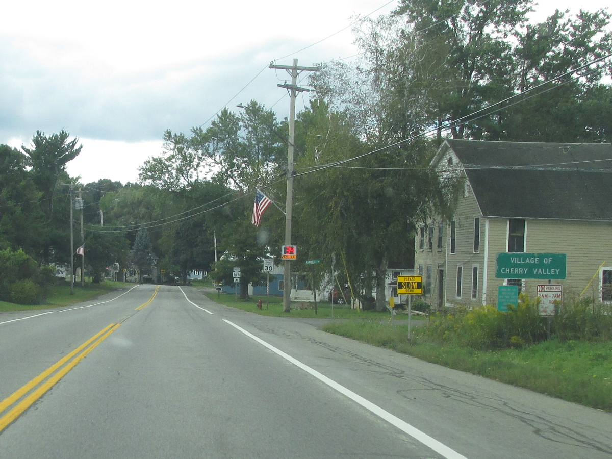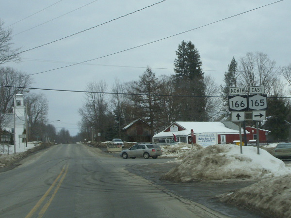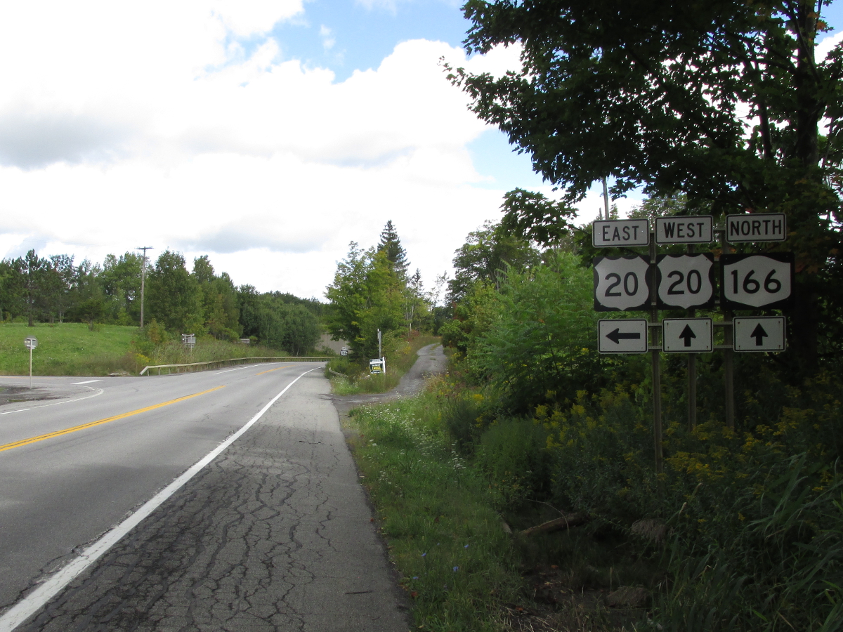NY 166's northern terminus was originally in downtown Cherry Valley. The alignment was extended approximately two miles when US 20 was realigned to bypass the village in the 1950s. |