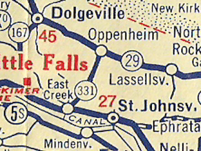 map showing NY 331 extended south to NY 5 near St. Johnsville.