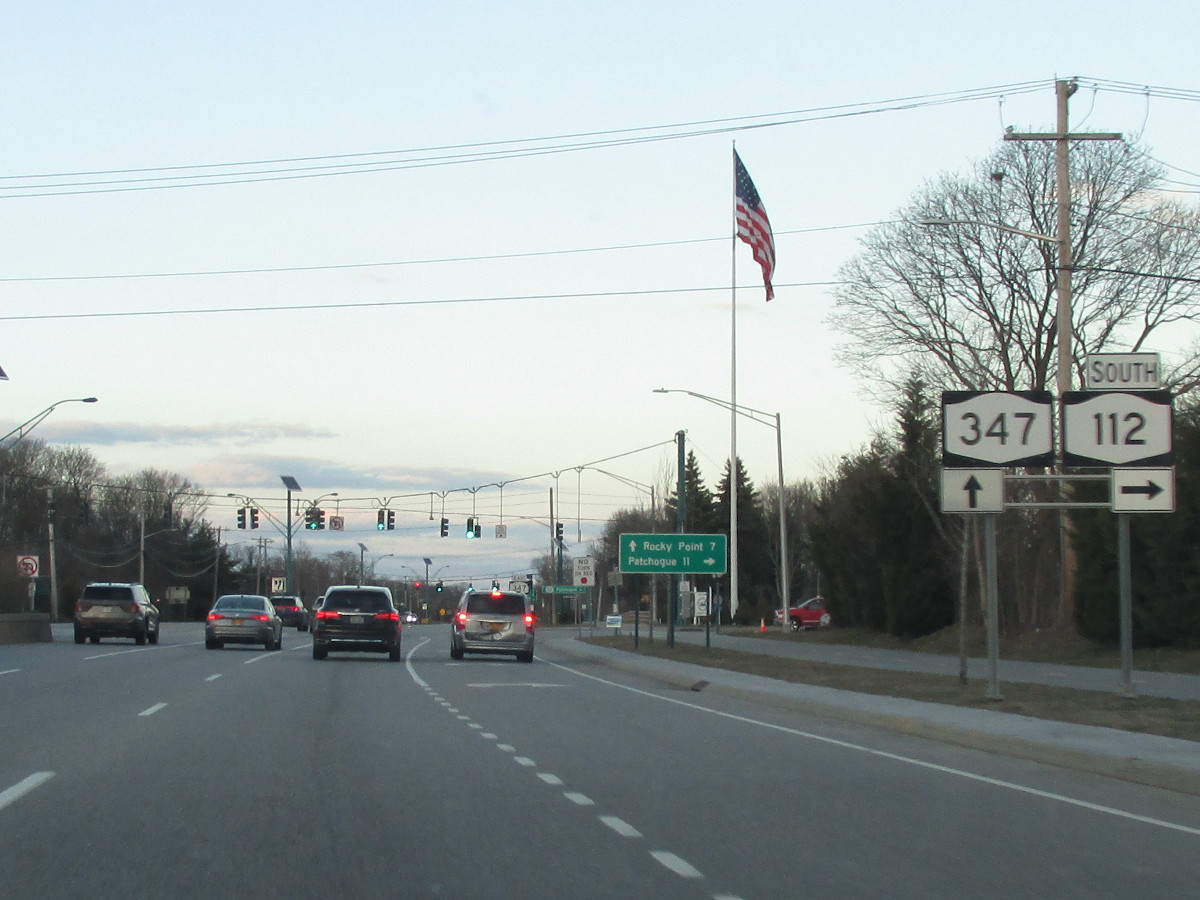 Westbound NY 347 reassurance marker near Stony Brook.