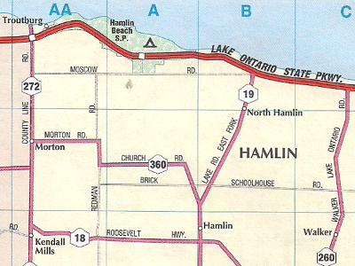 NY 360 originally followed NY 18's current alignment between Morton and Hamlin. The two routes would swap alignments in 1933. |