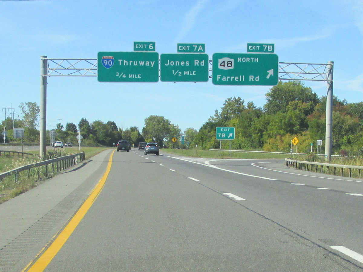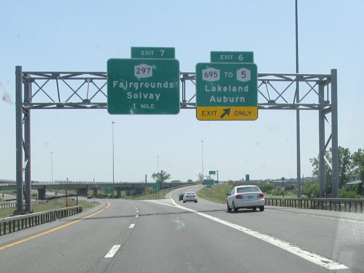 In May 2025, the process to convert I-690's exit numbers from sequential to mileage based began. The conversion would also account for NY 690's exits which previously lacked exit numbers. As of May 31, 2025, all exits west of the Syracuse city limits were converted. |